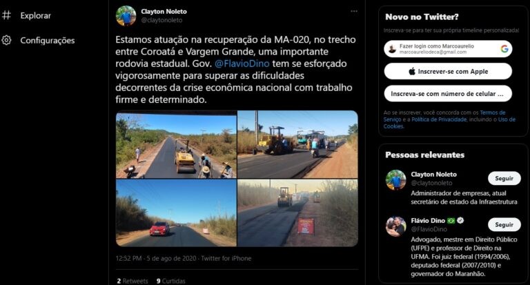 Na mesma época, respondendo a internautas, Noleto anuncia “Edital de licitação para investimentos de R$ 70 milhões na MA-006”.
