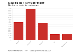 Apesar da queda, as duas regiões com maiores taxas proporcionais de meninas gravidas — Norte e Nordeste — registraram aumento nos casos em 2021, segundo os dados preliminares do MS. O Norte passou de 3.740 em 2020 para 3.975 em 2021, enquanto o Nordeste foi de 6.822 a 6.855.