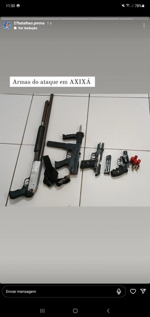 A DIRETORIA DE INTELIGÊNCIA E ASSUNTOS ESTRATÉGICOS-DIAE/PMMA, cumprindo determinação do Cmt Geral, efetuou na manhã de hoje (10) a prisão de três elementos suspeitos de participação em um homicídio na cidade de Axixá, bem como fez a apreensão de 05 armas de fogo e um colete balístico que possivelmente foram utilizados na ação delituosa.