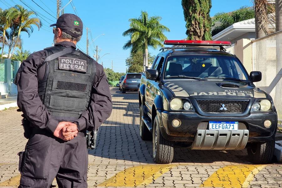 Policial federal durante operação na frente da casa de Bolsonaro