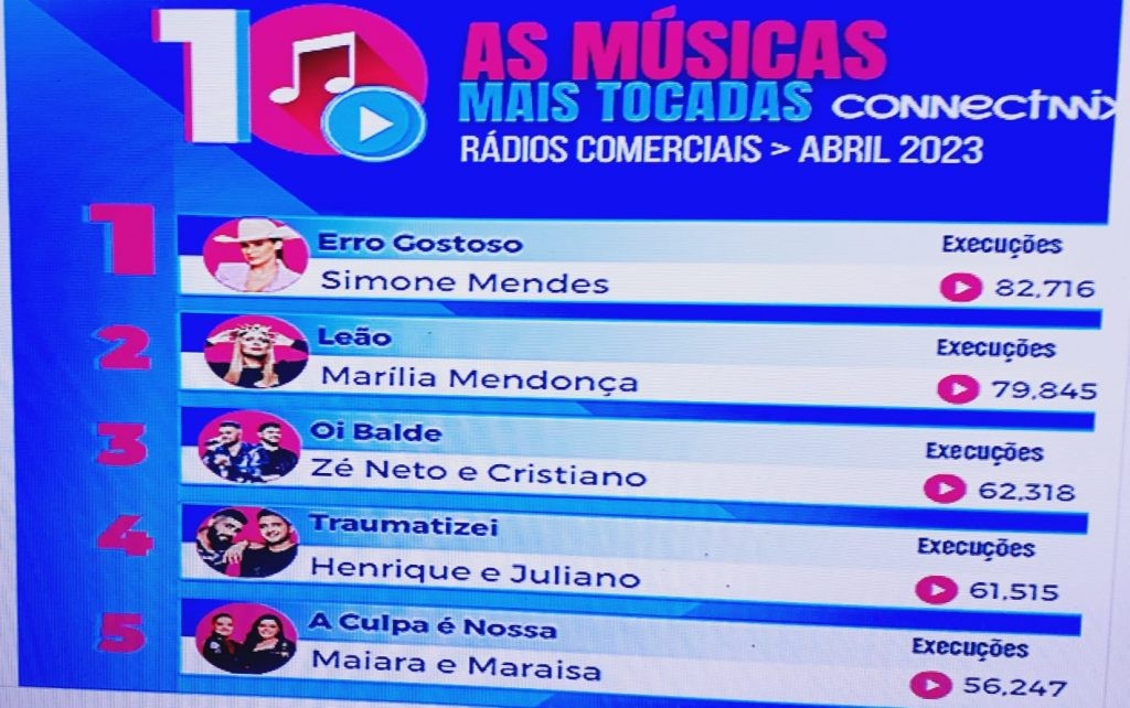 Veja as músicas mais executadas nas rádios em abril