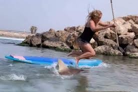 Vídeo: Tubarão ataca prancha e mulher cai em cima do animal.