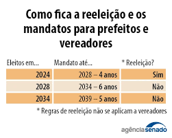 Os cargos do Legislativo — deputados federais, senadores, deputados estaduais e vereadores — continuam com a possibilidade de reeleição inalterada. Ao mesmo tempo, a duração dos mandatos também passará para cinco anos. Assim, as legislaturas do Congresso Nacional, das assembleias legislativas e das câmaras municipais passam a ter duração de cinco anos, e não mais de quatro.