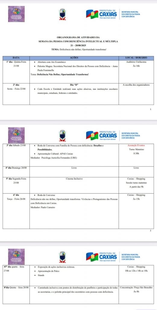 A iniciativa tem apoio da Secretaria Municipal dos Direitos da Pessoa com Deficiência e Prefeitura de Caxias, consolidando um espaço de diálogo e mobilização social em defesa da inclusão e do respeito à diversidade.