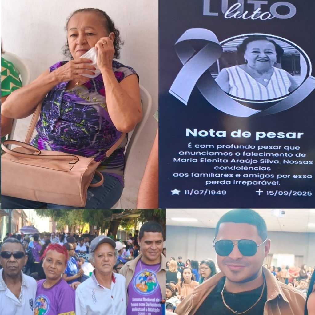 Caxias amanheceu de luto nesta segunda-feira, 15 de setembro de 2025. Atendendo ao chamado do nosso Senhor Deus, faleceu aos 76 anos a senhora Maria Elenita Araújo Silva, carinhosamente conhecida como Lenita. Durante sua vida, dedicou-se a levar