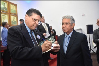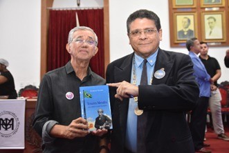 Expectativa, surpresas e aplausos marcaram a palestra magna do jornalista e escritor caxiense em São Luís FOTOS: Edmilson Sanches na tribuna. Assistentes no auditório. Com o presidente do IHGM, José Augusto Silva Oliveira, e Elimar Figueired