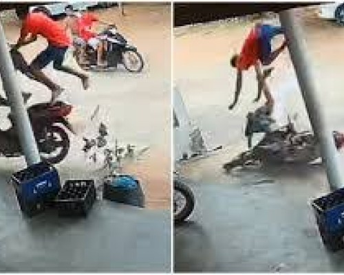 Criança de 9 anos pilota moto com adolescente na garupa e os dois "voam" após colisão