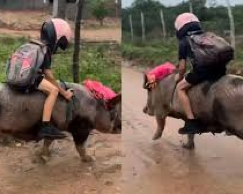 "Menino do Sertão" de 9 anos viraliza nas redes ao montar porca para ir à escola