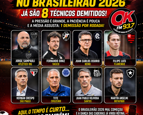 Já são 8 técnicos demitidos – pressão explode nos clubes! - DANÇA DAS CADEIRAS NO BRASILEIRÃO 2026 -
