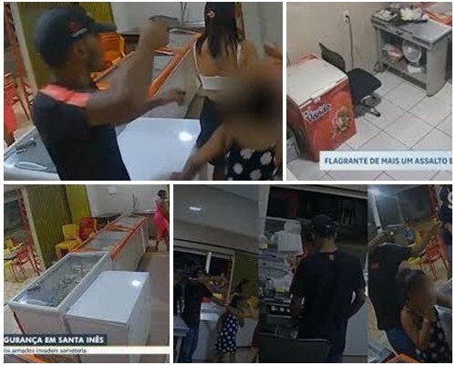 Santa Inês/MA - Dupla armada assalta sorveteria, e câmeras de segurança registram ação