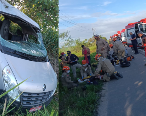 Capotamento de van deixa feridos após motorista perder controle da direção