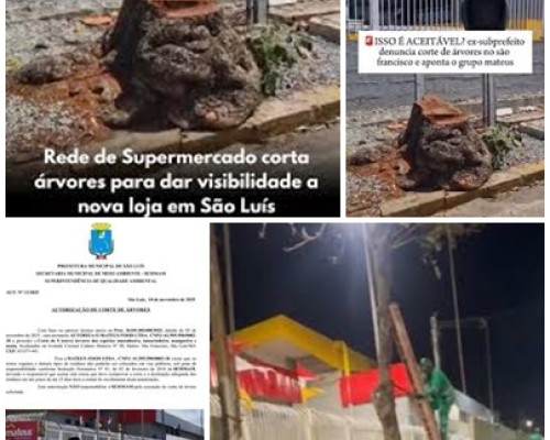 REFEITURA DE SÃO LUÍS AUTORIZOU GRUPO MATEUS A CORTAR ÁRVORES Novos vídeos mostram corte de árvores a mando de supermercado em São Luís; plenária com MP é convocada