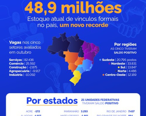 Brasil chega a 1,8 milhão de novos empregos com carteira assinada em 10 meses - Secretaria de Comunicação Social da Presidência da República