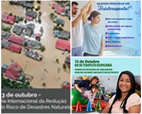 Hoje é dia de: Dia Internacional para a Redução de Desastres Naturais - Dia do Fisioterapeuta - Dia do Terapeuta Ocupacional